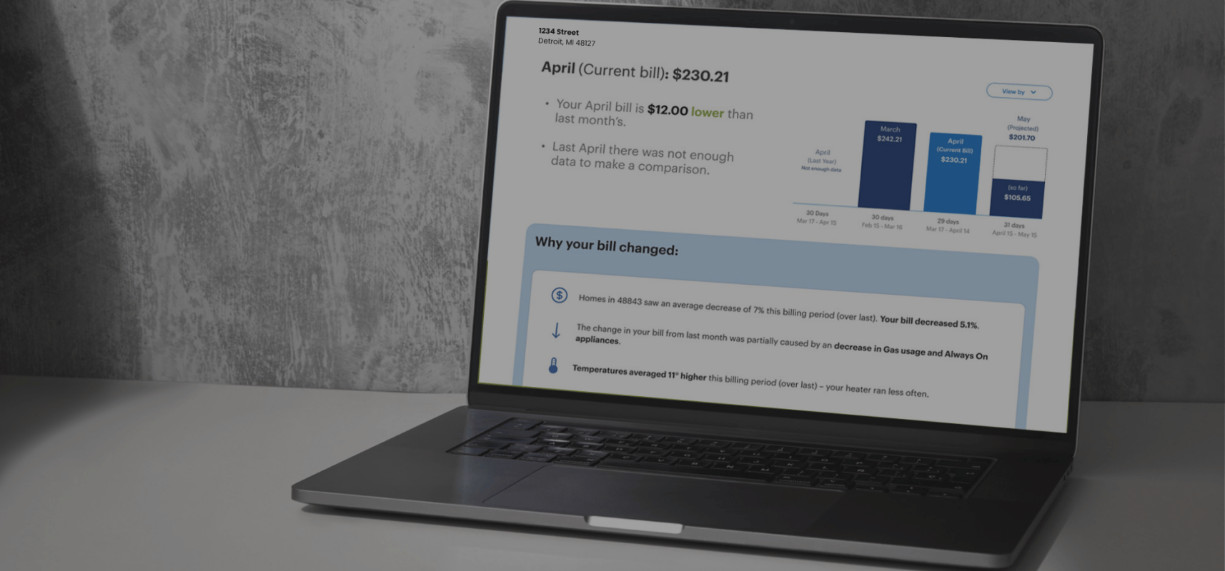 Self-service interactive energy consumption charts that help homeowners compare upcoming costs to their billing history and determine the factors impacting their bill.